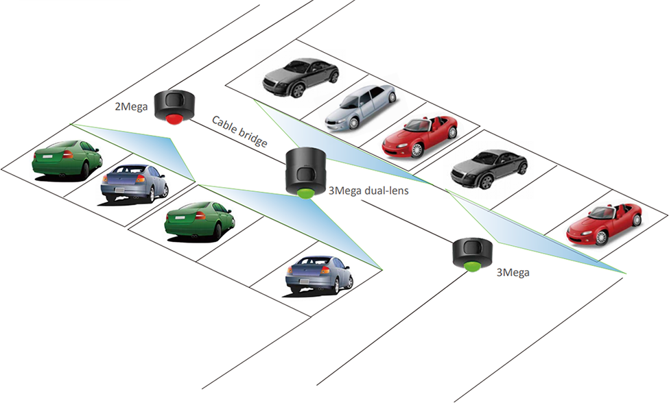 • 3Mega dual-lens spot camera could even detect six parking spaces, which could save over 25% of the cost for every parking space.