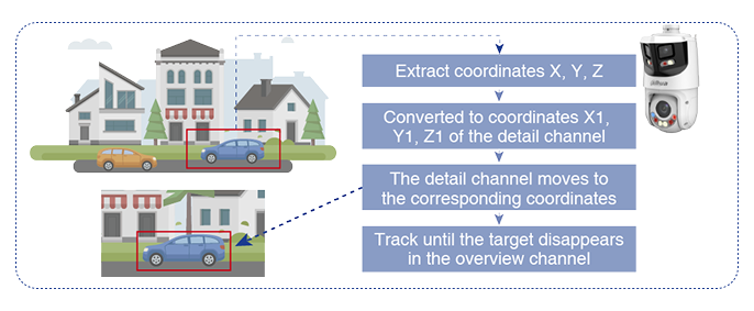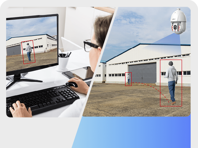 Dahua utilizes AI technology by integrating features such as high optical zoom, auto tracking, auto patrol, and tour, effectively delivering an intelligent automated surveillance solution and significantly enhancing monitoring efficiency and security.