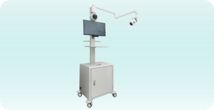 The lab training cart utilizes a 4K camera with 12x magnification and surrounding mechanical arm to provide real-time full-view displays of operational processes.