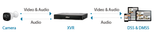 HDCVI Two-way Talk is a unique and leading technology in HD-over-Coax industry. It realizes intercommunication between the monitoring center and the monitored site in the video surveillance system. It is able to deliver vocal info instantly and receive feedback at the same time. Also, the recording contains audio evidence from both sides. HDCVI supports broadcast-quality audio, with more than 20dB SNR and 5 meter audio collection range.